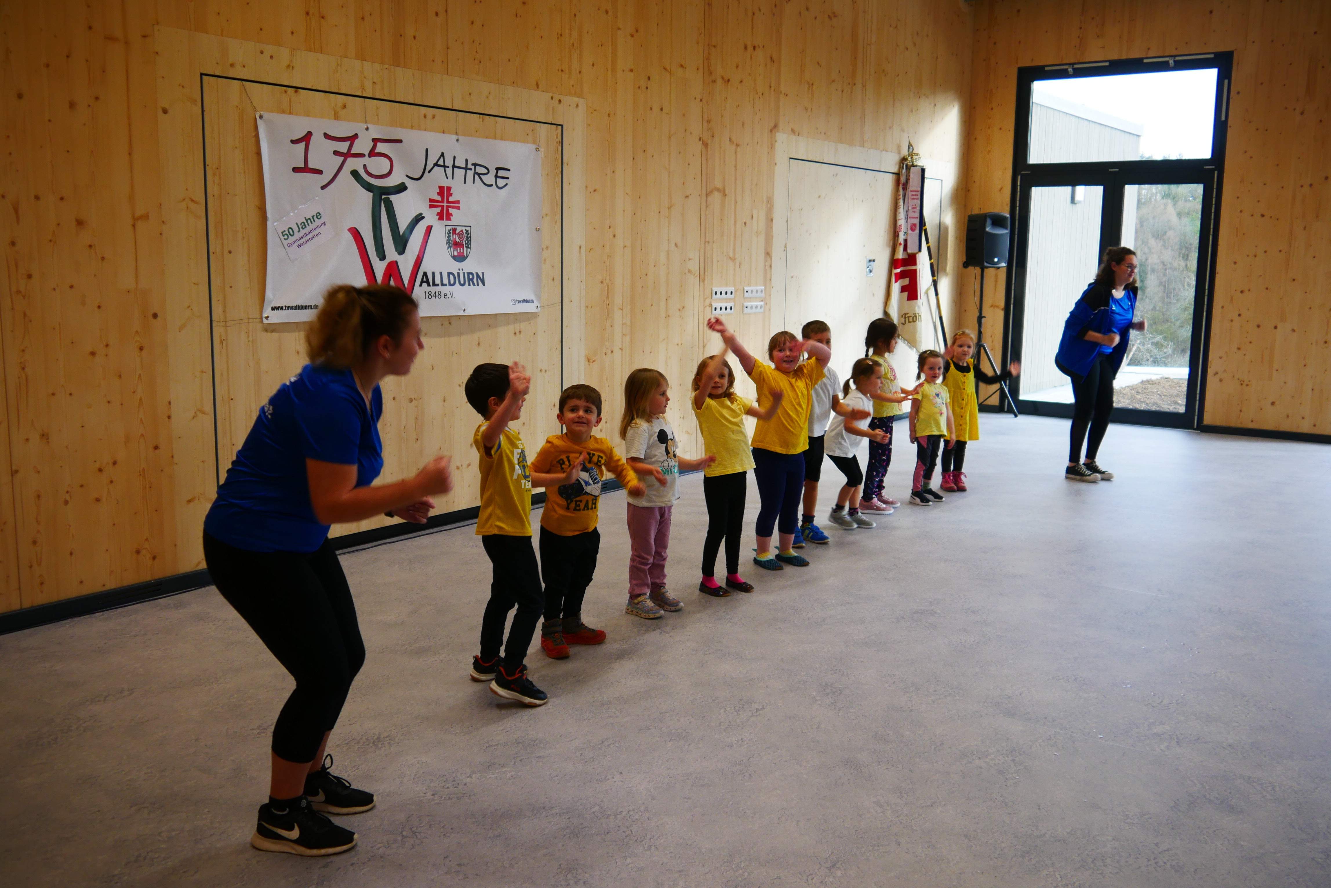 Die Kinder turnen in anregenden Gerätelandschaften und lernen dabei spielerisch ihren Körper zu beherrschen, fördern ihre Geschicklichkeit und stärken den Mut und das Selbstvertrauen. Lustige Bewegungsspiele zur Musik machen Spaß und erweitern die sozialen Kontakte.