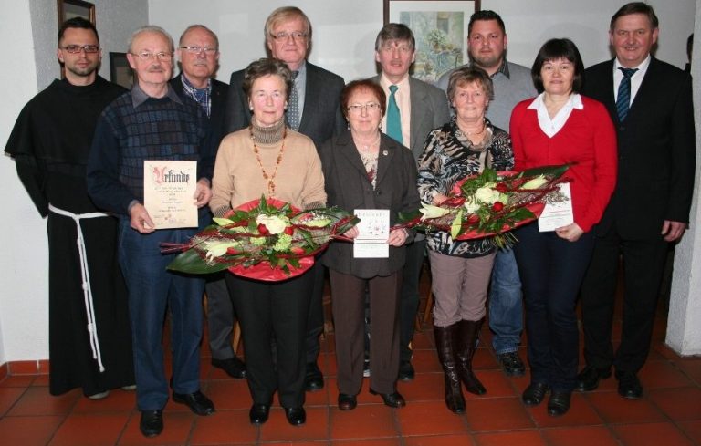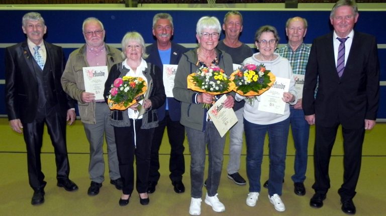 Walldürn. (Sti.) Im Rahmen einer in der vergangenen Woche im Nebenzimmer des Gasthauses "Zum Engel" in Walldürn stattgefundenen Feierstunde wurden vom 1. Vorsitzenden des TV 1848 Walldürn, Leo Kehl sowie von dessen Stellvertreter Martin Kautzmann und dem Ehrenvorsitzenden des TV 1848 Walldürn, Dietmar Kluge, folgende Vereinsmitglieder für langjährige Mitgliedschaft im Verein besonders geehrt: Für 25-jährige Mitgliedschaft mit der Vereinsehrennadel in Silber mit Goldkranz Alexander Beuchert, Achim Dörr, Brigitte Gehrig, To-bias Leiblein, Volker Mackert, Heike Meidel und Birgit Repp. Für 40-jährige Vereinsmitgliedschaft mit der Ehrennadel in Gold Jutta Kaufmann, Larl Schirmer und Klaus Schirmer. Für 50-jährige Vereinsmitgliedschaft mit einer Dankurkunde und einem Präsent Wolfgang Böhm, Johanna Kluge und Karin Weidinger. Für 60-jährige Vereinsmitgliedschaft mit einer Dankurkunde und einem Präsent Hannelore Strauß. mehr...